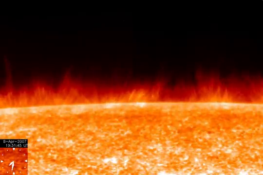 彩層と粒状班の境界にはスピキュールと呼ばれる細かな毛のようなものが見える。これが濃縮され、粒状班に流れ込む陽子と電子のプラズマだろう。